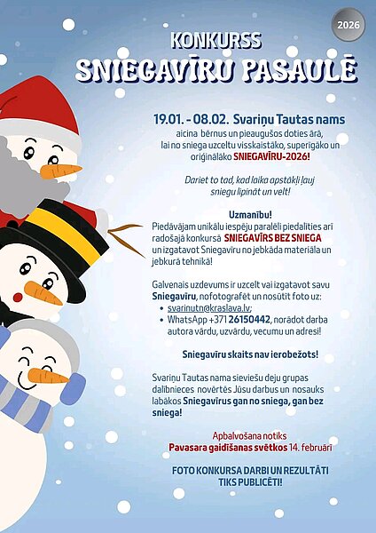 No 19.01. līdz 08.02. Svariņu Tautas nams aicina piedalīties sniegavīru celšanas konkursā
