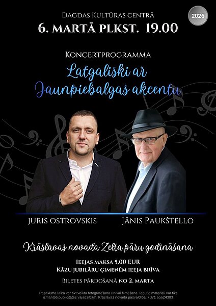 6. martā plkst. 19.00 Dagdas Kultūras centrā